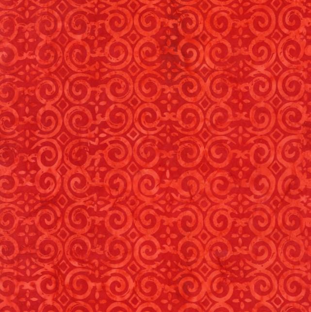 Tonga Fire Red Wallpaper Scroll Batik- Half Yard Cut from Tonga Batik Cedar & Sleighbells Collection by Judy & Judel Niemeyer for Timeless Treasures Fabrics 100% premium cotton.