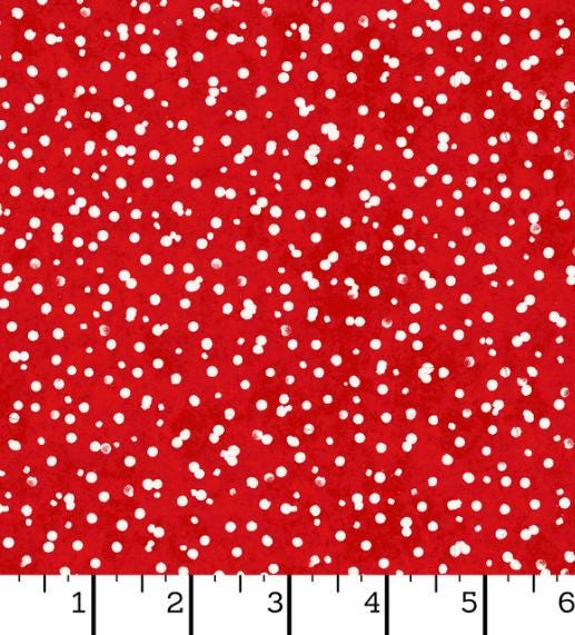 Winter Wreaths Red Scattered Snow Fabric - Half Yard Cut from Winter Wreaths Collection by Maywood Studio Fabrics. 100% premium cotton. Sold in 1/2 yard increments. Multiple quantities will be cut in a continuous piece.