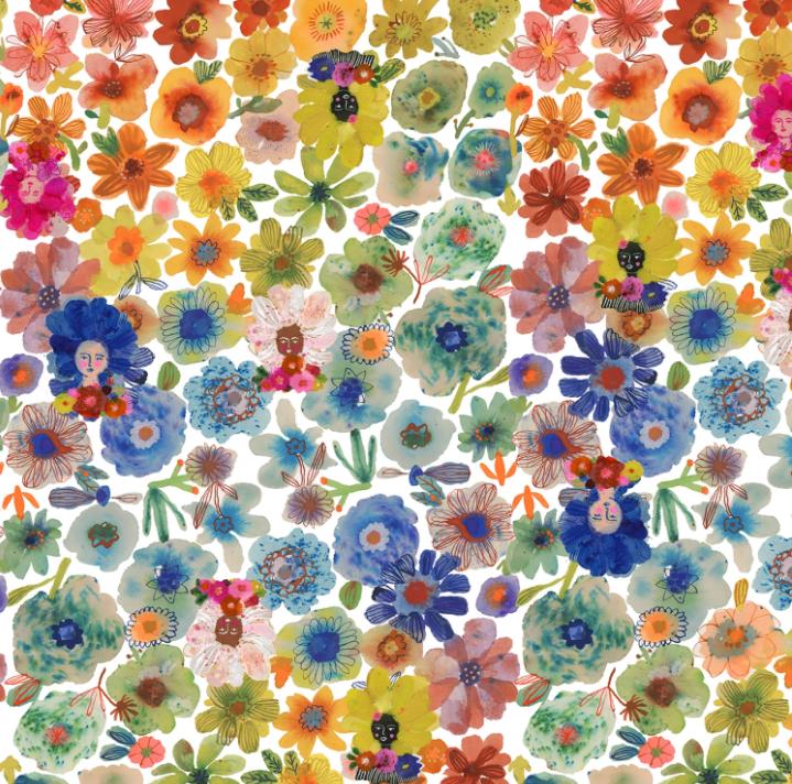 Color Riot Rainbow Pompadours in Pink Fabric - Half Yard Cut from Pompadours in Pink Collection by Carolyn Gavin for Free Spirit Fabrics. -This vibrant fabric features a lively array of floral designs, with flowers in shades of blue, orange, yellow, and green, creating a colorful riot that's sure to catch the eye. The pattern includes whimsical faces integrated into some of the flowers, adding a playful and artistic touch to the traditional floral motif. 100% premium cotton fabric Sold in 1/2 yard increments. Multiple quantities will be cut in a continuous piece.