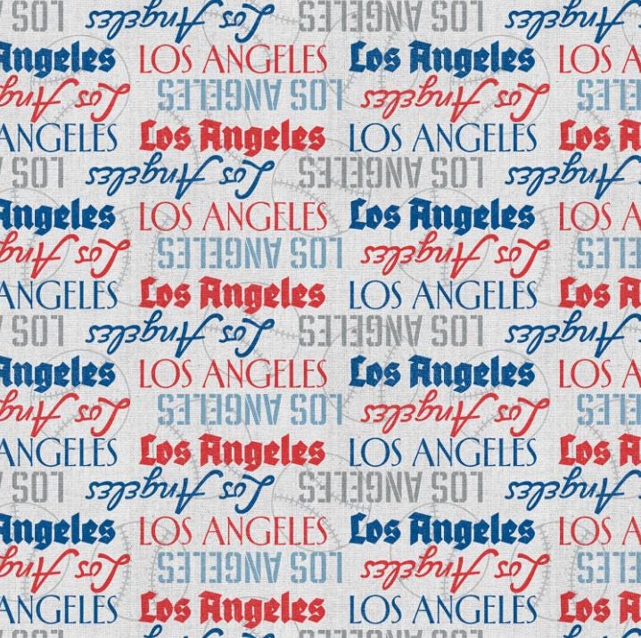 The Final Inning Los Angeles Words Blue/Red Baseball Fabric - Half Yard Cut by PBS Fabric. 100% premium cotton fabric Sold in 1/2 yard increments. Multiple quantities will be cut in a continuous piece.